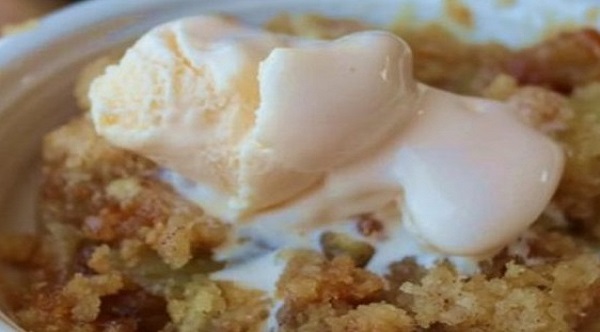 Allow it to cool for about 5 minutes and then serve warm with vanilla ice cream.