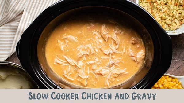 * If the gravy is runnier than you like, you can thicken it very easily. When the cooking time is finished, whisk 2 Tbsp. of cold water and 2 Tbsp. of cornstarch in a small bowl until it is well blended. Add the mixture to the gravy and chicken in the slow cooker, stir it well, place the lid back on, and let it cook for 10 more minutes or until thickened to your liking.