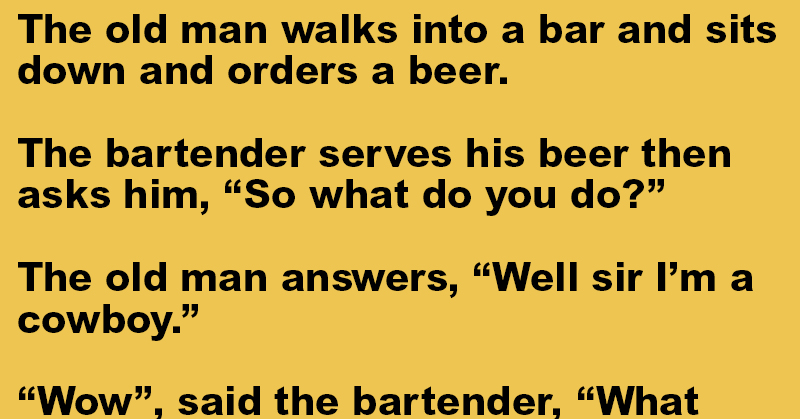 “Wow,” said the bartender, “what exactly does a cowboy do?”